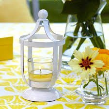 - Świecznik matalowy na tealight lub świece votive Partylite Garden Urn Votive Holder biały, lekko przecierany w stylu prowansalskim i wysokości 18cm i średnicy 9cm.