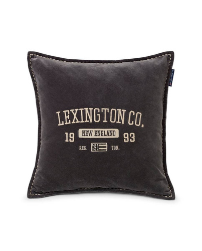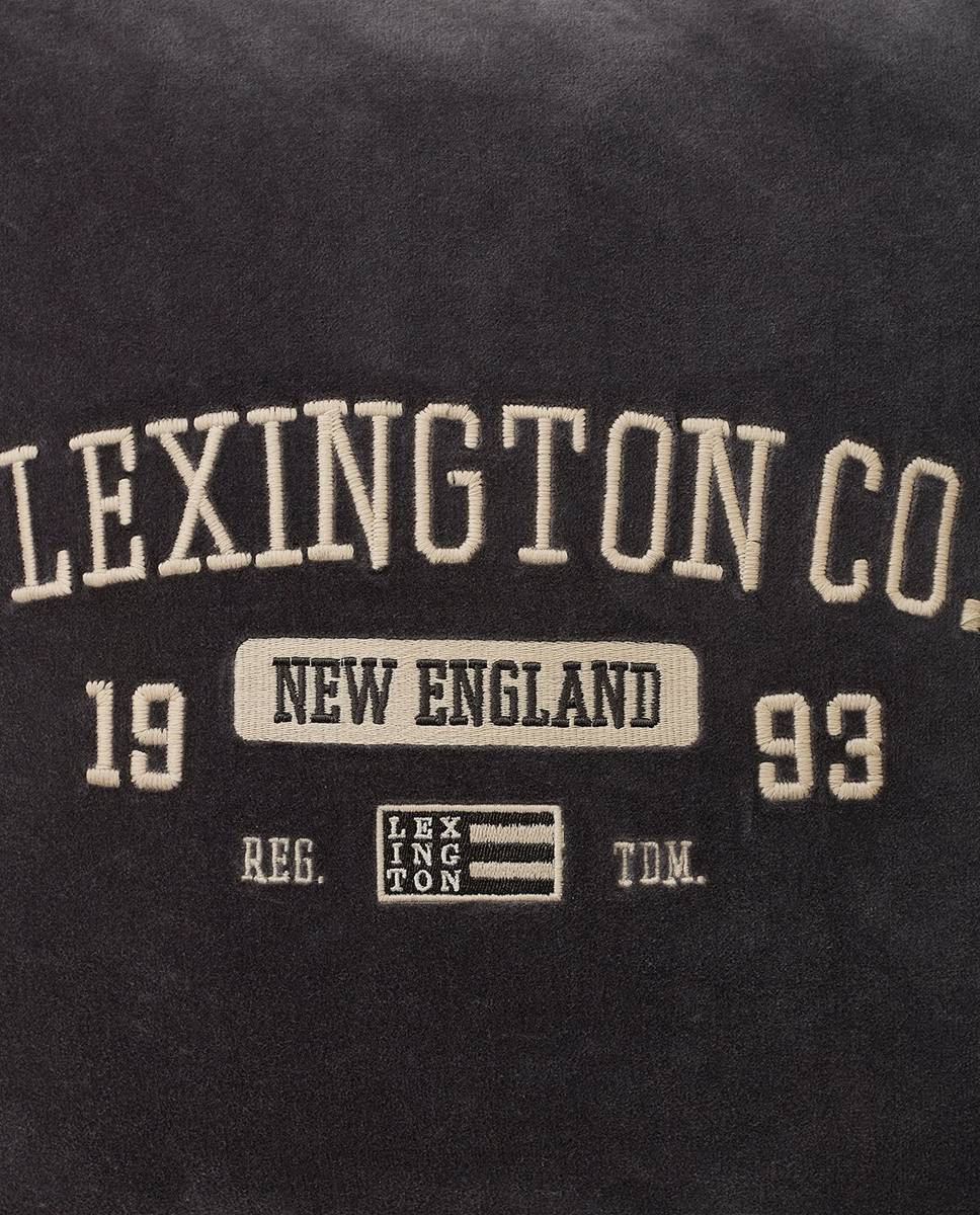 Piękna, miękka, welwetowa poszewka na poduszkę z kolekcji Logo Message w kolorze grafitowej szarości z wyszytym logo marki Lexington, wykonana w 100% z wysokiej jakości bawełny o wymiarach 50x50cm. Zalecane pranie w w 40°C.