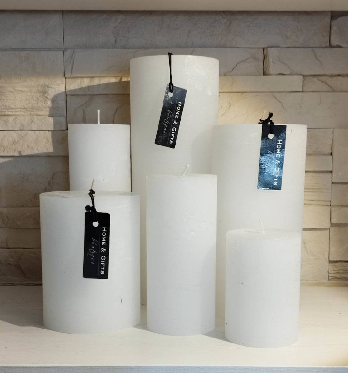 Świeca dekoracyjna walec Rustic biała 20x7cm czas palenia około 90h