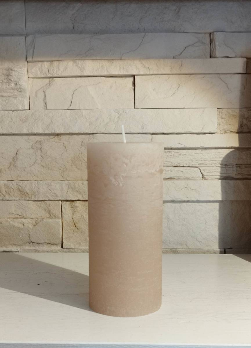 Świeca dekoracyjna walec Rustic jasny beż15x7cm czas palenia około 70h