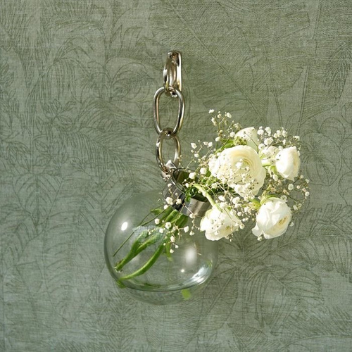 Wiszący ogród? Czemu nie, ciekawa dekoracja ściany - TAK!!! Szklany wazon do powieszenia na ścianie na aluminiowym haku Sevilla Hanging Vase marki Riviera Maison. Średnica wazonu wynosi 15cm więc pomieści całkiem spory bukiet.